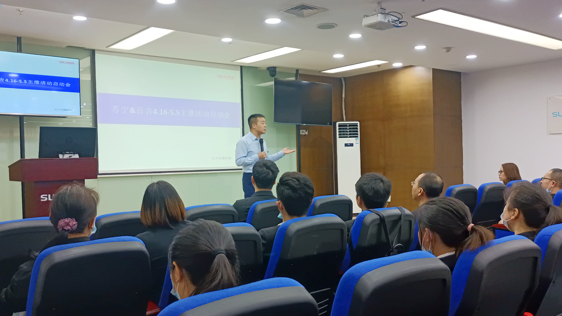蘇寧&百吉4.16-5.5主推活動啟動會在解放碑蘇寧易購營銷中心召開。蘇寧重慶大區(qū)總經(jīng)理-劉其志,重慶蘇寧廚衛(wèi)經(jīng)營部采銷總監(jiān)-郭騏菘,重慶百吉廚電副總經(jīng)理-童強,重慶百吉廚電KA銷售總監(jiān)-鄧躍參與了此次會議并發(fā)表講話,同時參會的還有蘇寧易購銷售督導以及百吉廚電銷售。會議重點講解蘇寧&百吉聯(lián)合主推活動任務,為迎接即將到來的五一小長假,百吉特推出大型促銷活動,此次會議明確了兩方銷售任務,同時為蘇寧和百吉形成密切的合作關系發(fā)展定調。