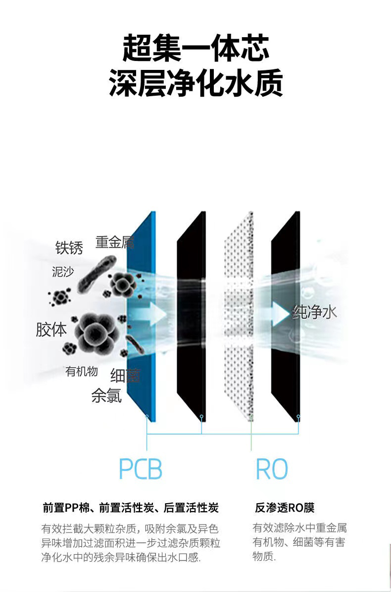 百吉凈水器A系列高端凈水器采用四級(jí)高精密度過(guò)濾,其中第一級(jí)三合一PCB復(fù)合濾芯,前置PP棉、前置碳棒、后置碳棒。百吉凈水器PCB復(fù)合濾芯替代了傳統(tǒng)凈水器的前三級(jí)濾芯,多重濾芯復(fù)合,核心濾材采用進(jìn)口碳釬維。能有效攔截大顆粒雜質(zhì),吸附余氯及異色異味,增加過(guò)濾面積,進(jìn)一步過(guò)濾雜質(zhì)顆粒,凈化水中的殘余異味確保出水口感。